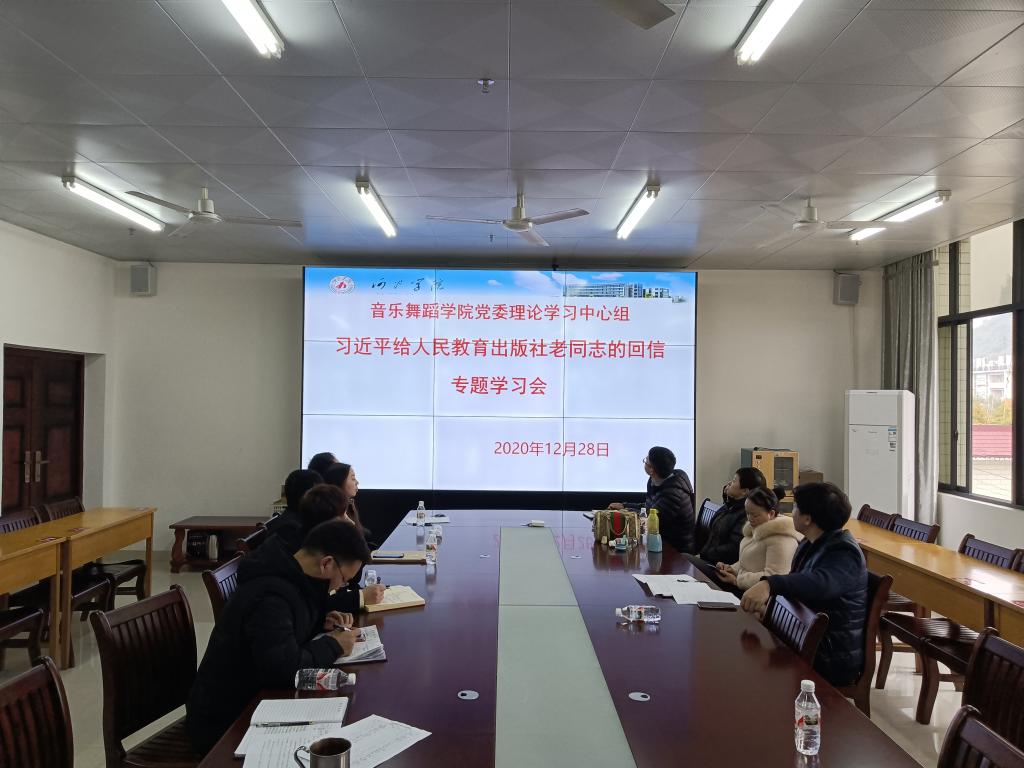 2020年12月28日下午,betway必威西汉姆联党委在艺术楼402会议室开展了习近平给人民教育出版社老同志回信精神学习会。学院党委书记魏菱主持会议并就学习内容作了中心发言。学院党委理论学习中心组成员,院领导,各党支部书记,各系部、教研室主任参加了会议。
