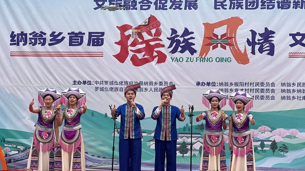 为更好地推动校地合作,共同铸牢中华民族共同体意识,3月30日,betway必威西汉姆联师生一行11人身着民族服饰,化身民族团结小使者,亮相罗城仫佬族自治县纳翁乡,助力纳翁乡首届瑶族风情文化旅游活动开幕式文艺演出。