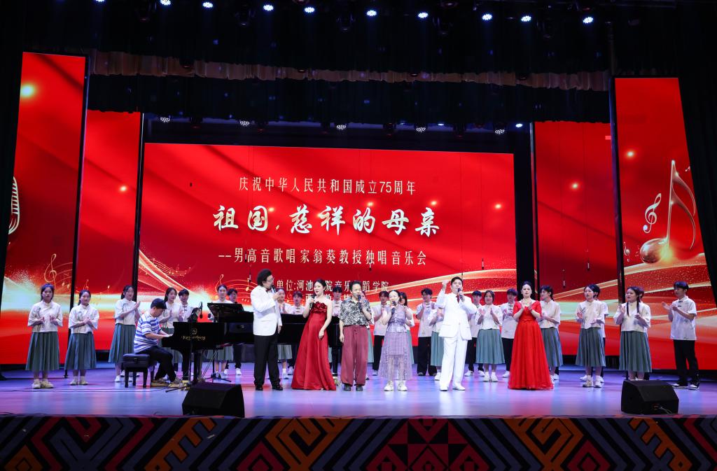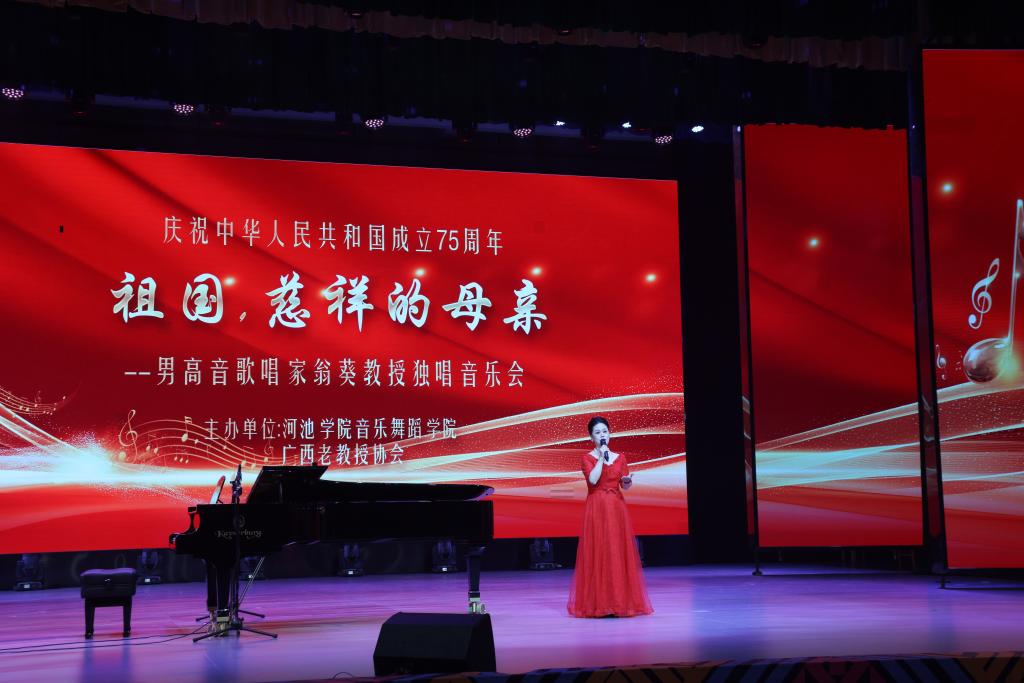 为庆祝中华人民共和国成立75周年,5月23日晚,广西著名歌唱家、声乐教育家翁葵教授《祖国,慈祥的母亲》独唱音乐会在河池学院艺术楼表演厅隆重举行。betway必威西汉姆联音乐专业的全体师生齐聚一堂,共同欣赏了这一场音乐盛会。