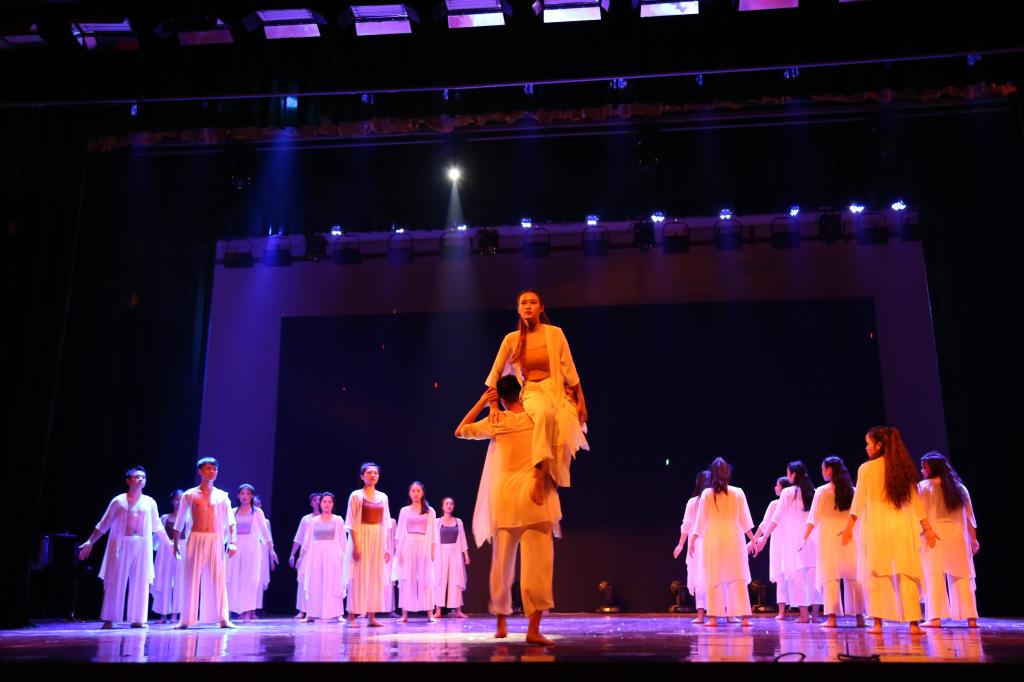 晚会共有15个优秀获奖作品进行了现场展演。其中,16音乐表演班的小组唱音乐《龙的传人》,充满爱国情怀;顾广英同学的钢琴独奏《帕格尼尼主题变奏曲》优美动听,以及陆思融、舒兰等演唱的《美丽的草原我的家》等等使得整台晚会高潮迭起,精彩不断,为观众奉上了一场精彩的视听盛宴。晚会在充满回忆碎片的群舞《碇步桥水清悠悠》中落下帷幕。