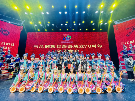 侗乡儿女心向党,砥砺奋进谱新篇。今年正逢三江侗族自治县成立70周年。2022年12月14日至16日三江侗族自治县举办了一系列丰富多彩的县庆活动。我校原创舞蹈《侗听琵琶语》受邀参加三江侗族自治县成立七十周年文艺晚会,并于2022年12月15日在三江侗听剧场震撼上演。此次活动共有25名同学、4名老师共赴三江完成演出活动。