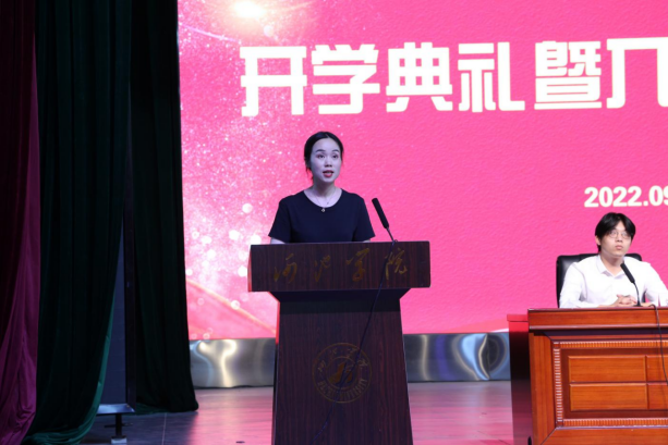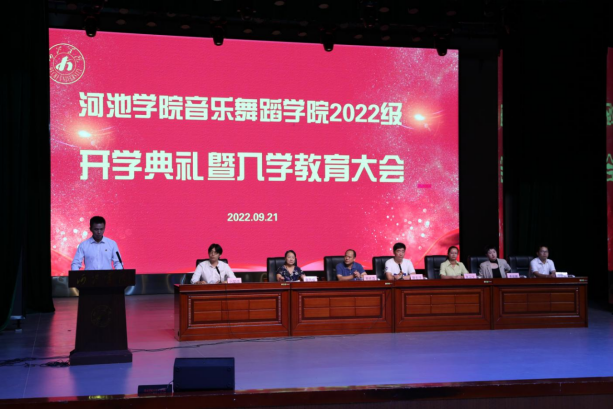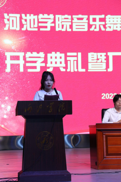 大会在庄严的国歌声中拉开序幕。首先是2022级音乐教育本科班李好同学代表新生发言,她表示进入大学就是步入新的起点,一切从零开始,她倡议同学们尽快适应新环境;团结友爱,互帮互助;尊师好学,持之以恒;遵守校纪校规,争做品学兼优的新时代大学生。