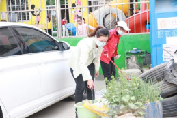 党员干部带头与志愿者共同清扫街道