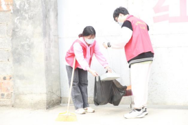 志愿者们开展卫生清洁活动