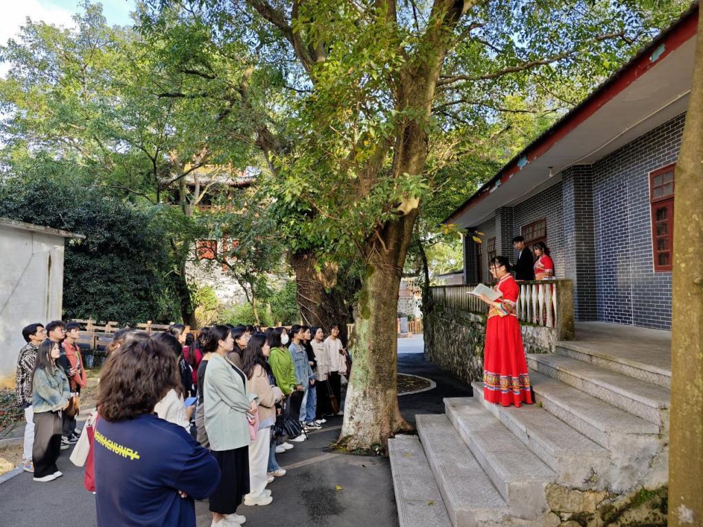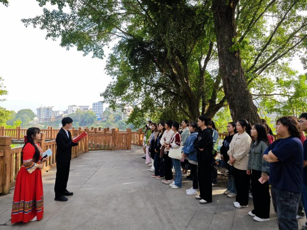 新生们在商学院“校园文化巡礼宣讲团”的带领下有序参观了校史馆、冠英亭、冠英阁、东西凡一平文学馆、龙江月夜、独竹漂训练基地等多个校园文化景点并认真聆听景点文化介绍。