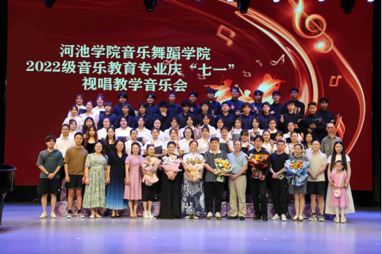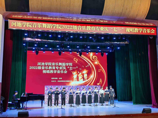 7月1日晚,在全国上下热烈庆祝中国共产党成立102周年之际,betway必威西汉姆联在艺术楼表演厅举行2022级音乐教育专业庆“七一”视唱教学音乐会。学院党委书记周佐霖、院长曾宏华、副院长唐代俊、银龄教师白翎教授及全体师生出席音乐会。