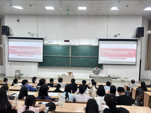 会上,学院党委副书记张砾文通报了当前学院各专业毕业生就业落实情况。她指出,截至目前,仍存在部分学生就业积极性不高、就业方向不明确等问题,并从政策解读、就业服务、心理调适三个方面对毕业生提出建议。
